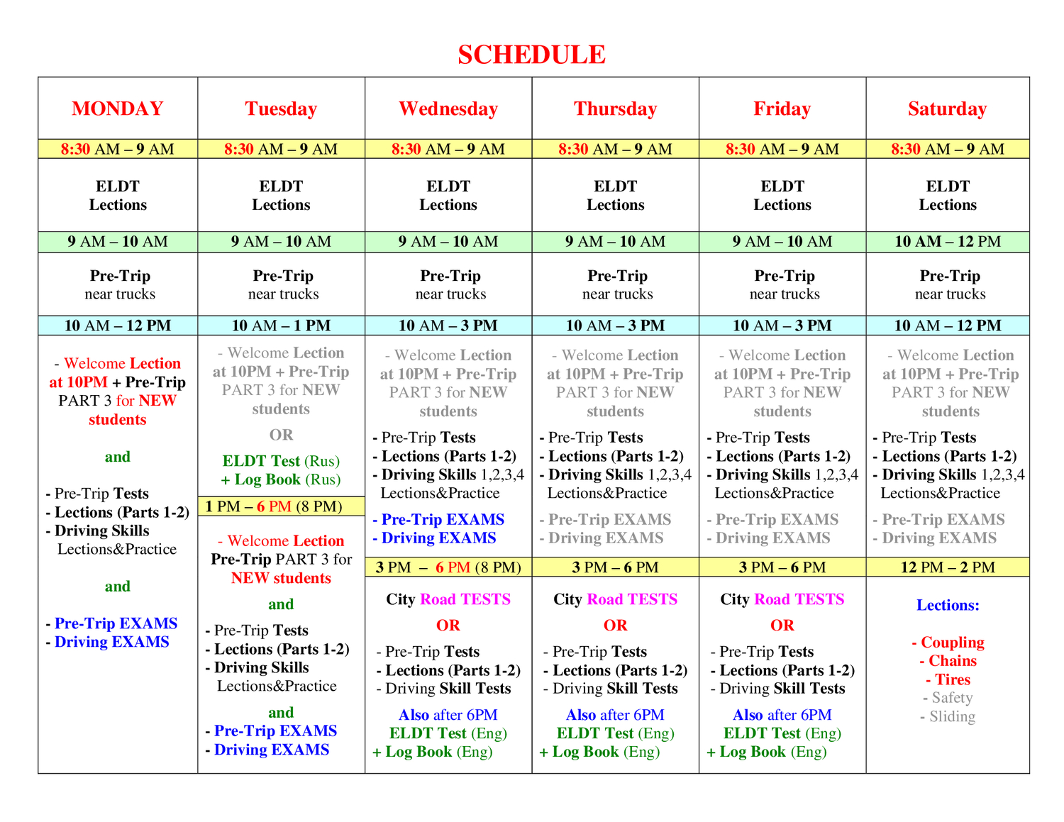 To take classes (Pre-Trip, Driving skills, City rides, Free ELDT)